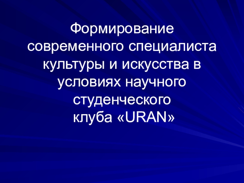 Формирование современного специалиста культуры и искусства в условиях научного студенческого   клуба «URAN»