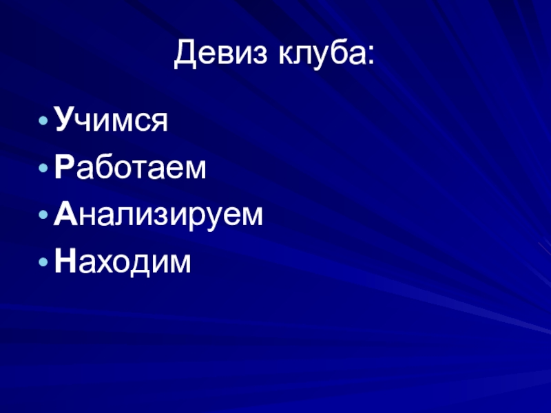 Девиз клуба:УчимсяРаботаемАнализируемНаходим