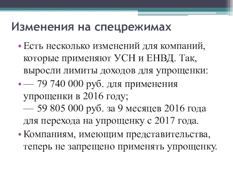 ЕНВД. Так, выросли лимиты доходов для упрощенки: