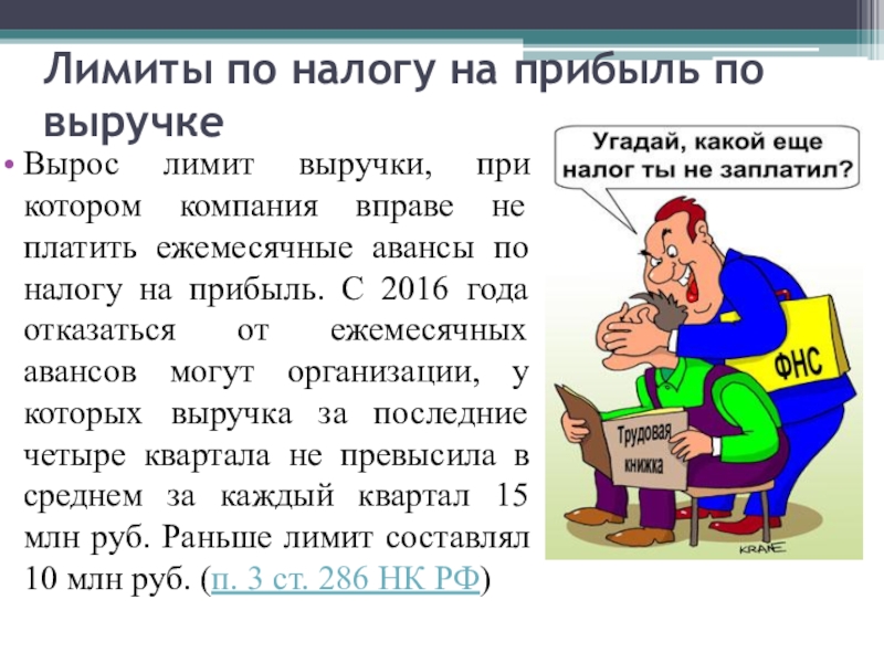 Слайд 8Лимиты по налогу на прибыль по выручке