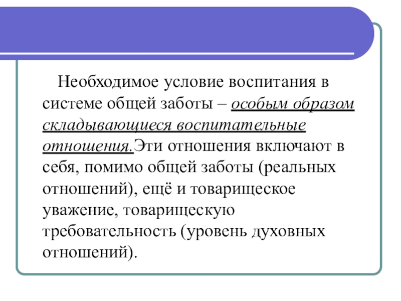 Слайд 8Необходимое условие воспитания в системе общей заботы – особым образом складывающиеся