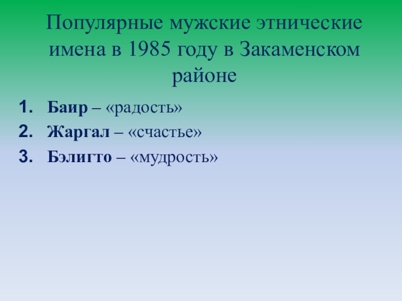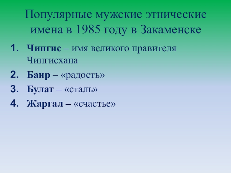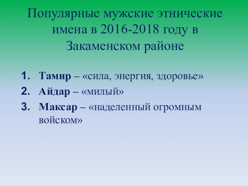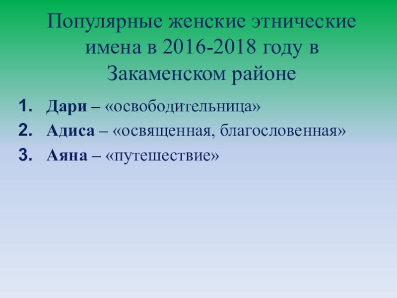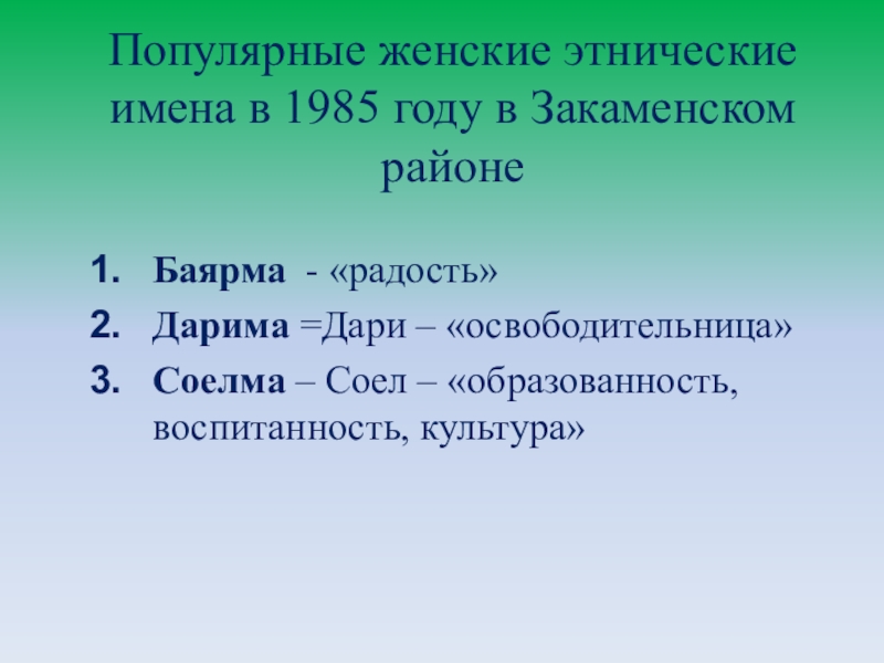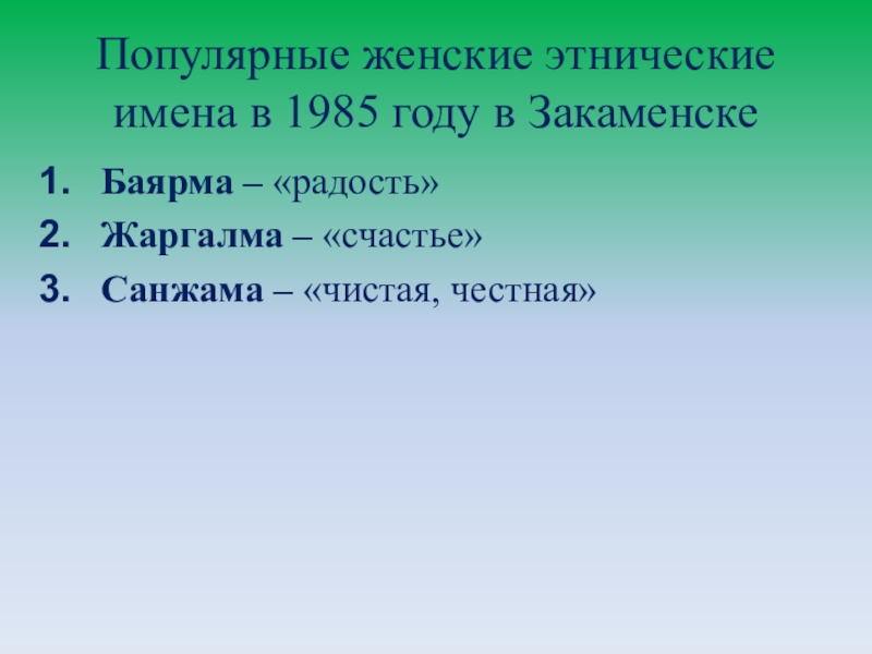 (изучение именослова Закаменска и Закаменского района на примере функционирования этнических имен)