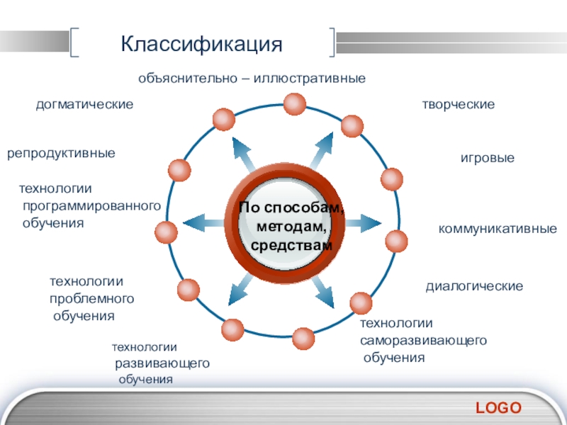 По преобладающему методу: проблемно – поисковая, творческая, диалогическая, игровая.