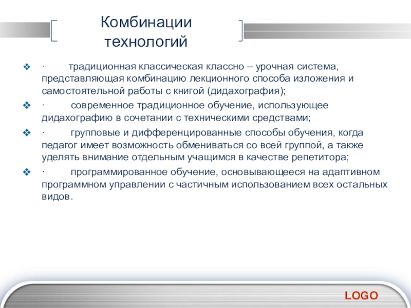 По мнению, многих отечественных педагогов (Беспалько В.П., Журавлева В.И., Кларина М.В.) технология обучения – это составная часть системы обучения, связанная с дидактическими процессами, средствами и организационными формами обучения.