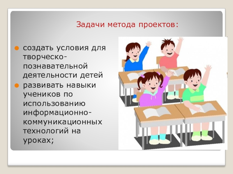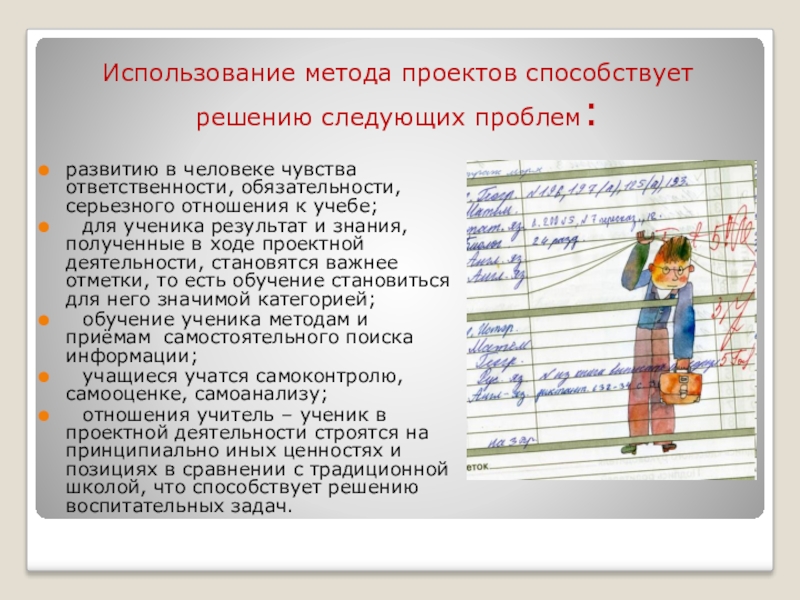 Слайд 8Использование метода проектов способствует решению следующих проблем: