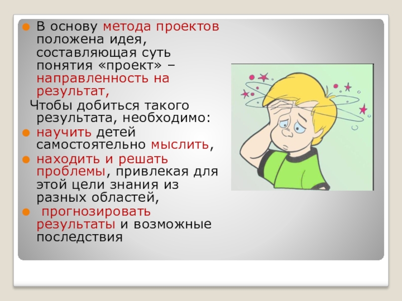 Слайд 5В основу метода проектов положена идея, составляющая суть понятия «проект» –