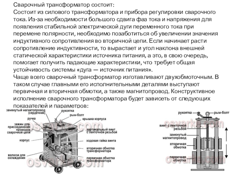 Сварочный трансформатор предназначен для создания электрической дуги, с помощью которой