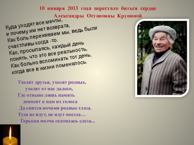 10 января 2013 года перестало биться сердце Александры Остаповны Крупиной