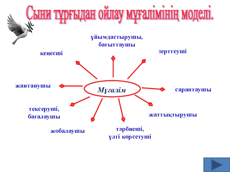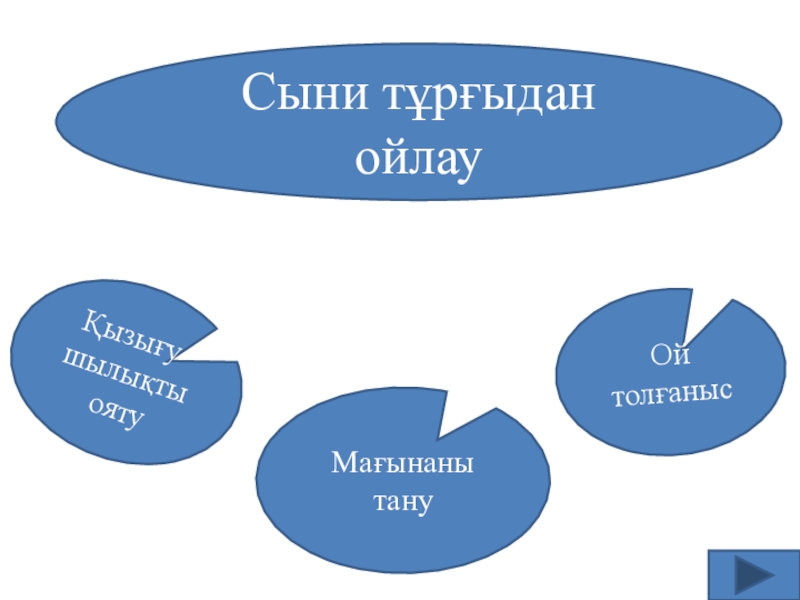 Сыни тұрғыдан ойлау —бұл балалардың саналы мағынаны іздеу, өзінің көзқарасының қандайлық болуымен, басқалардың да пікірін ескеріп, қандай да обьективті ойлау және қисыны бар өзіндік қате сенімінен бас тарта білу.