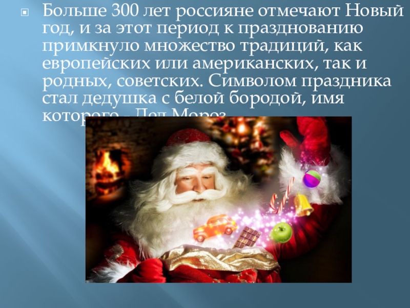 Слайд 4Больше 300 лет россияне отмечают Новый год, и за этот период