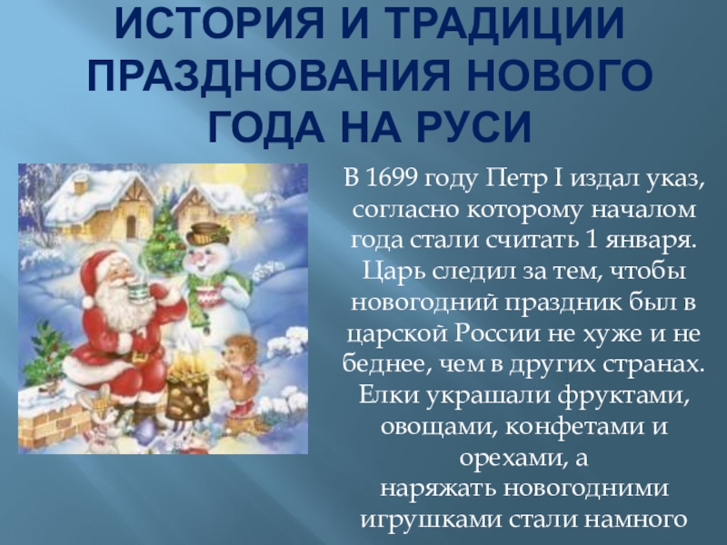 Слайд 2история и традиции празднования нового года на Руси