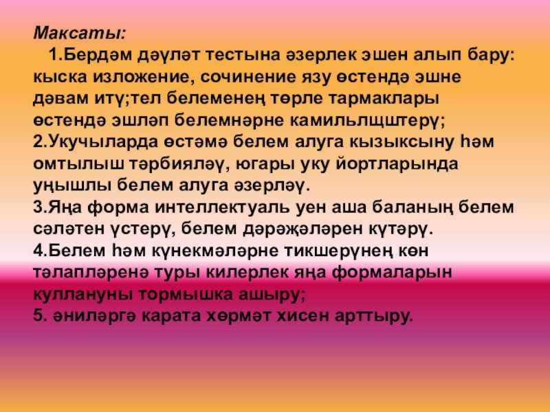 1.Бердәм дәүләт тестына әзерлек эшен алып бару:кыска изложение,