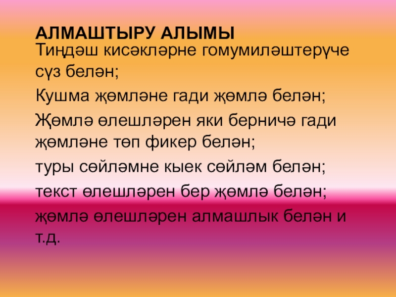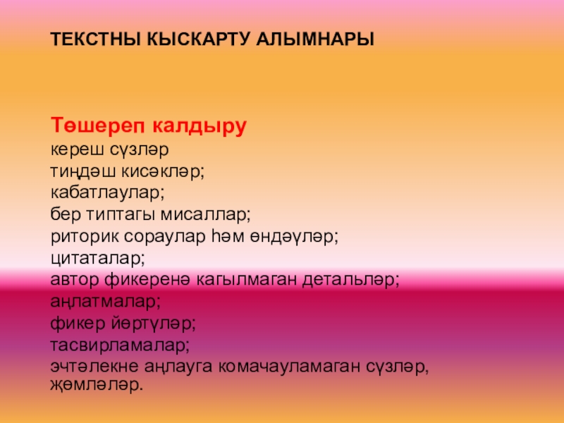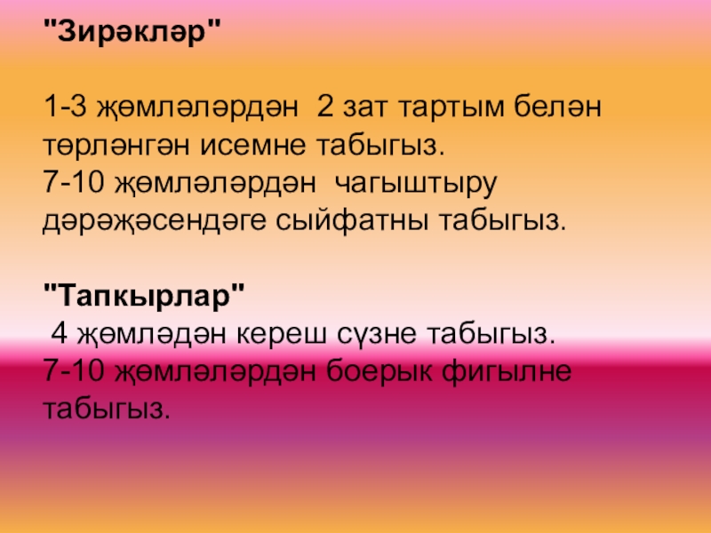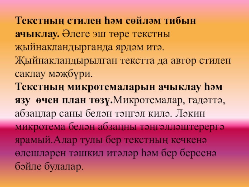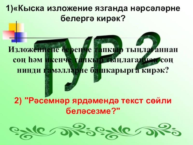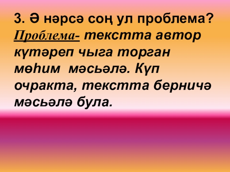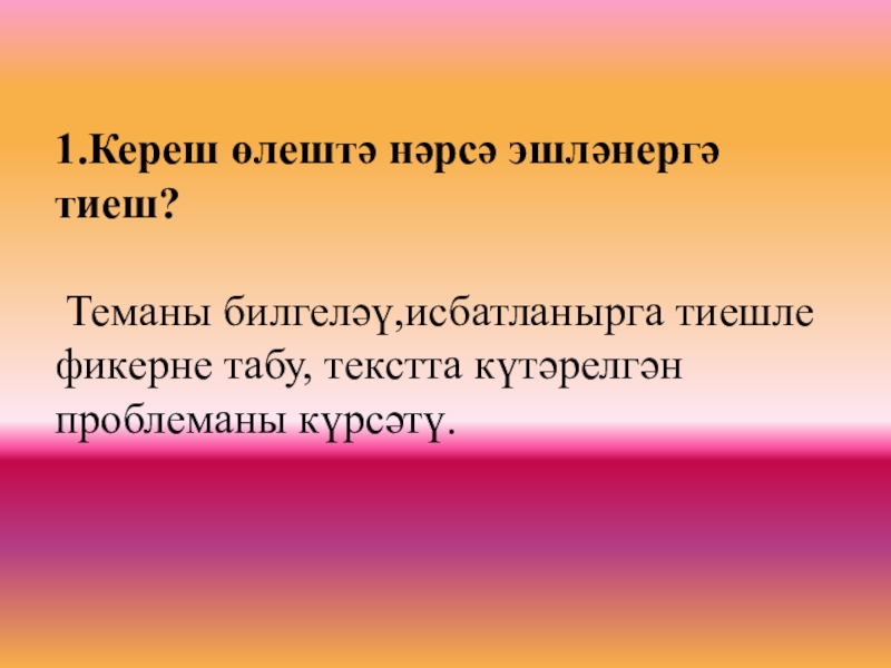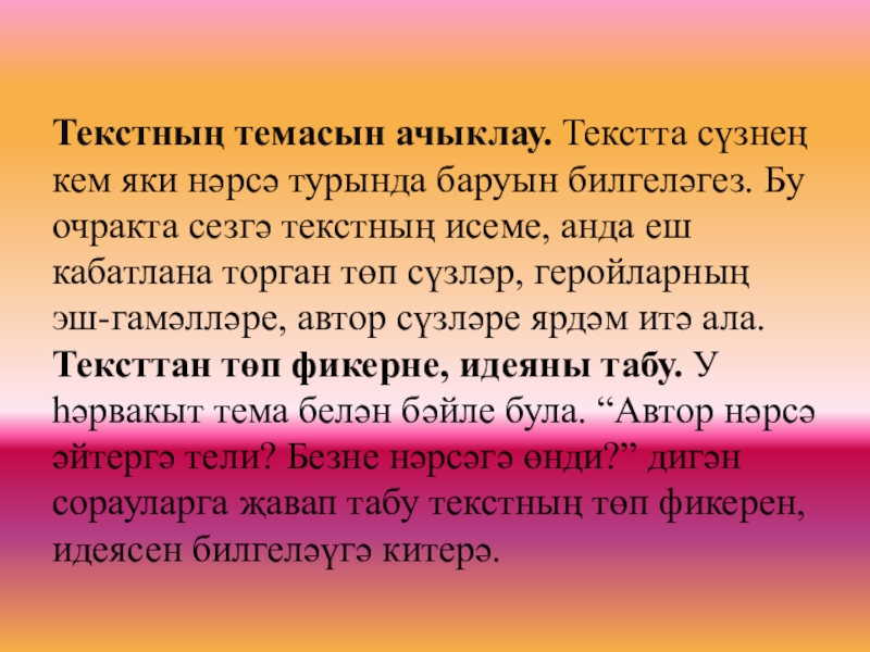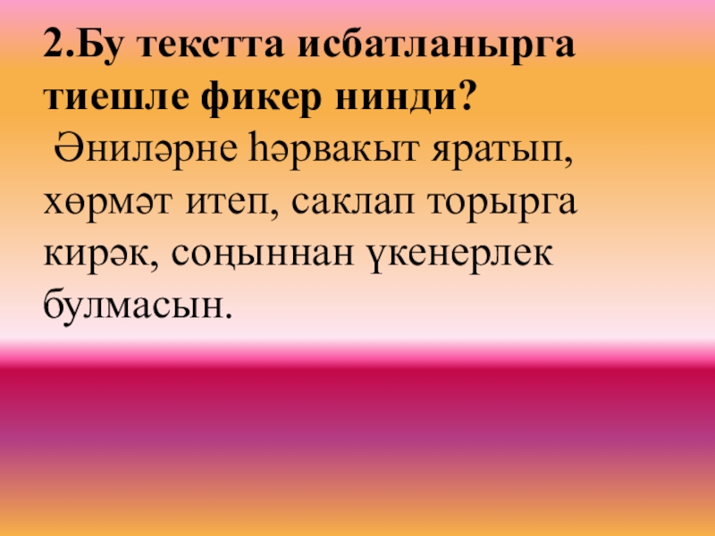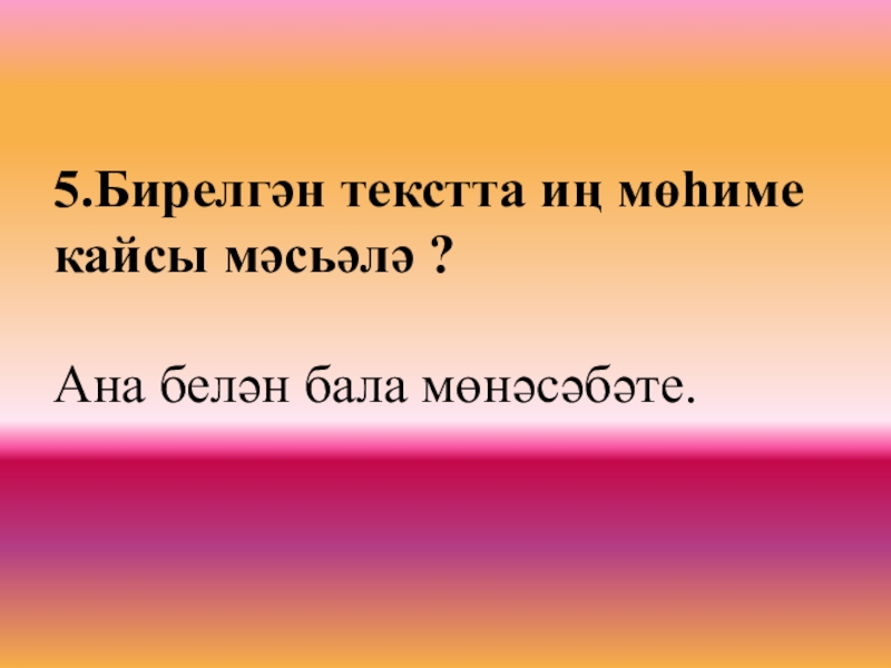 Слайд 285.Бирелгән текстта иң мөһиме кайсы мәсьәлә ?
