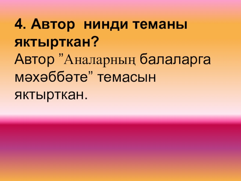 Автор ”Аналарның балаларга мәхәббәте” темасын яктырткан.