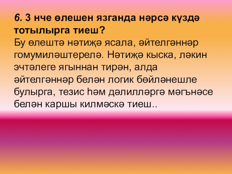 Слайд 236. 3 нче өлешен язганда нәрсә күздә тотылырга тиеш?