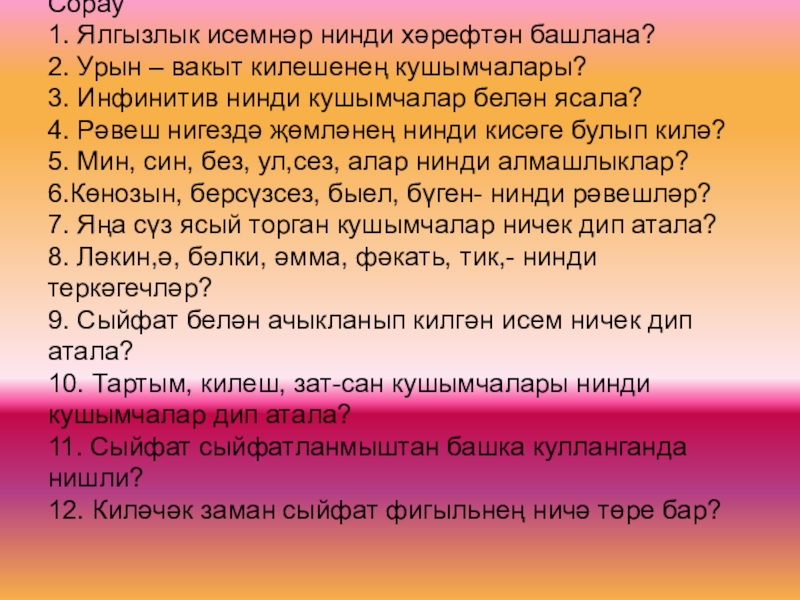 Слайд 786 тур. “Морфология һәм сүз ясалышы"