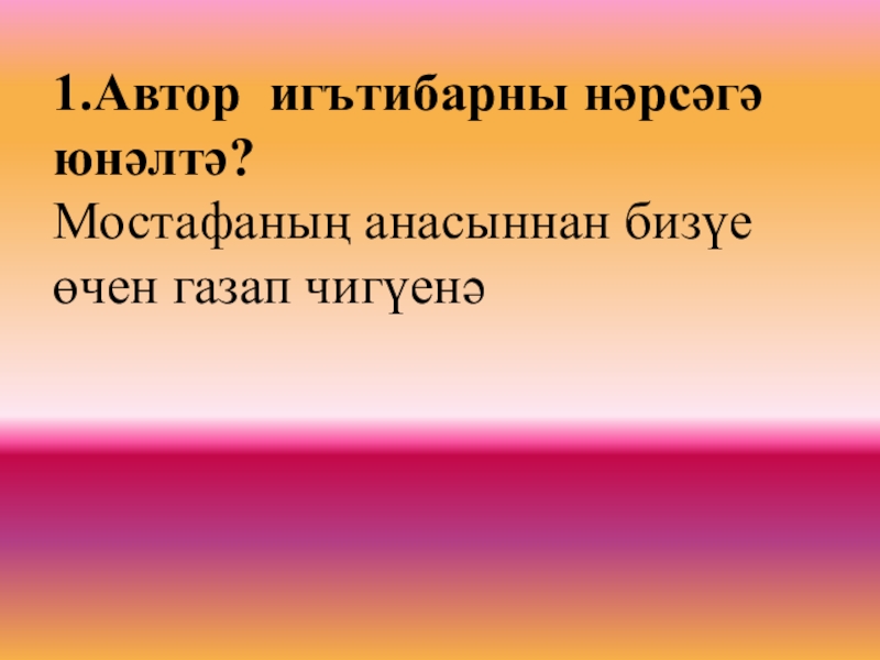 Слайд 311.Автор игътибарны нәрсәгә юнәлтә?