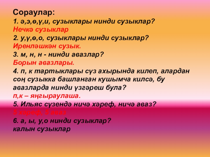 аңлап килергә , текст буенча бирелгән сорауларга җавап бирергә иде.