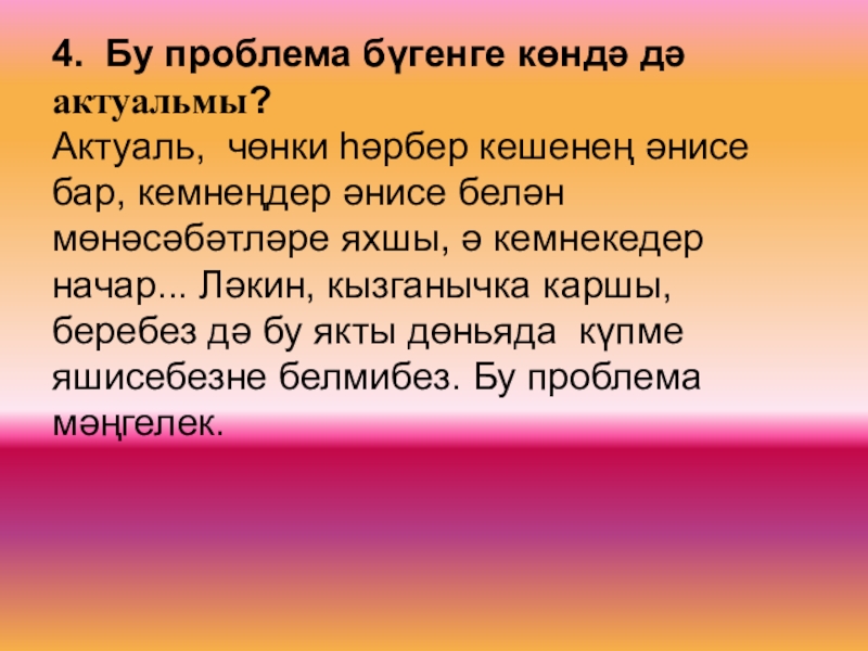 Слайд 344. Бу проблема бүгенге көндә дә актуальмы?