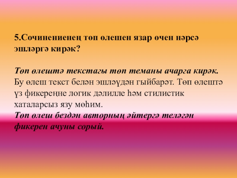 Слайд 225.Сочинениенең төп өлешен язар өчен нәрсә эшләргә кирәк?