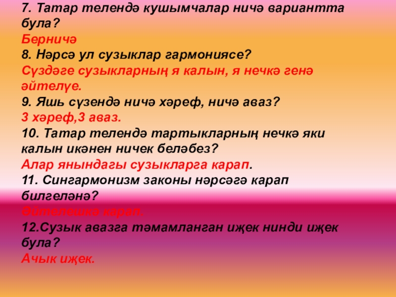 10. Татар телендә тартыкларның нечкә яки калын икәнен ничек беләбез?