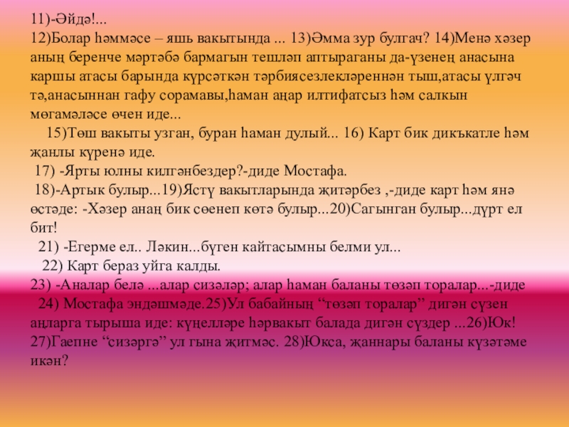 12)Болар һәммәсе – яшь вакытында ... 13)Әмма зур булгач? 14)Менә хәзер