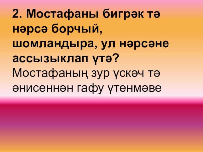 Слайд 322. Мостафаны бигрәк тә нәрсә борчый, шомландыра, ул нәрсәне ассызыклап үтә?