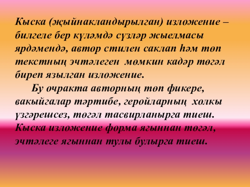 1)«Кыска изложение язганда нәрсәләрне белергә кирәк?
