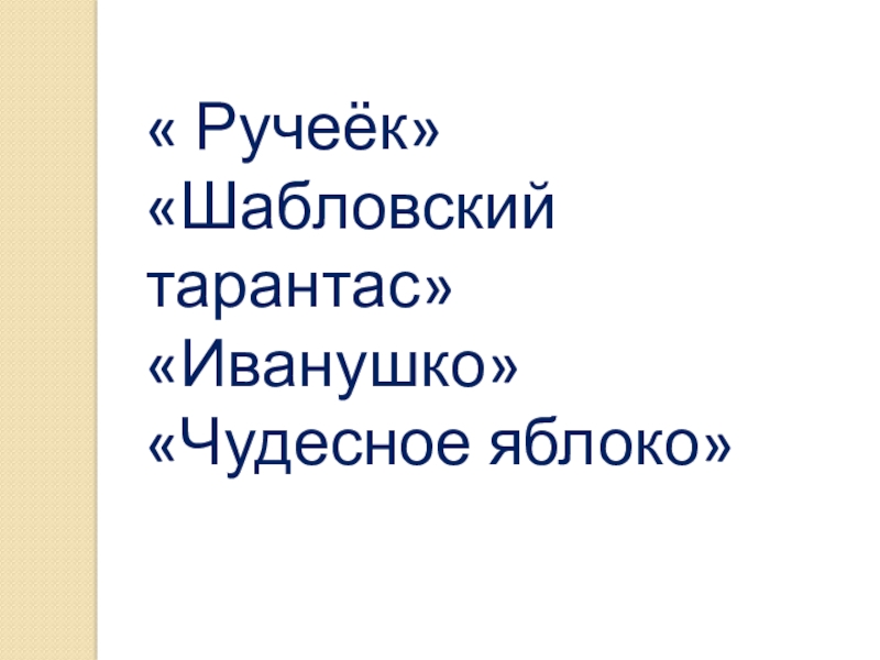 « Ручеёк»«Шабловский тарантас»«Иванушко»«Чудесное яблоко»