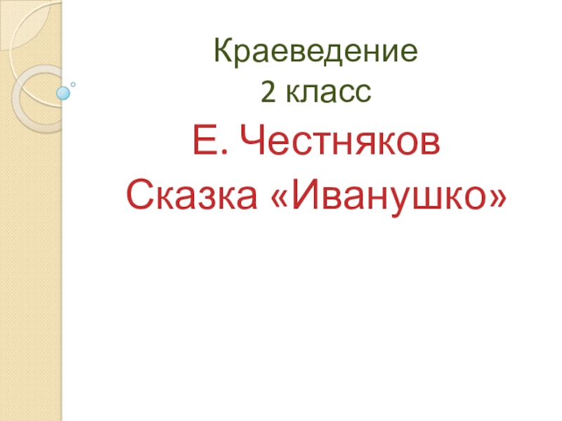 Краеведение  2 классЕ. ЧестняковСказка «Иванушко»