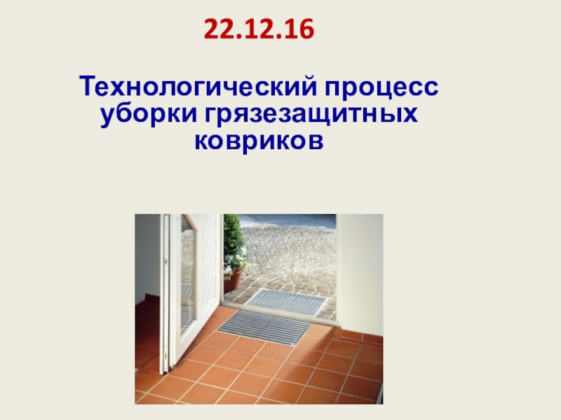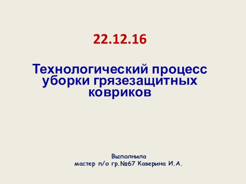 22.12.16 Технологический процесс уборки грязезащитных ковриковВыполнила мастер п/о гр.№67 Каверина И.А.