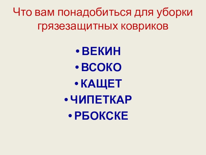 Слайд 7 Что вам понадобиться для уборки грязезащитных ковриков