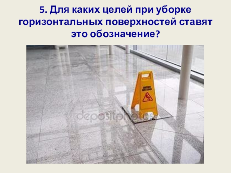 Слайд 45. Для каких целей при уборке горизонтальных поверхностей ставят это обозначение?