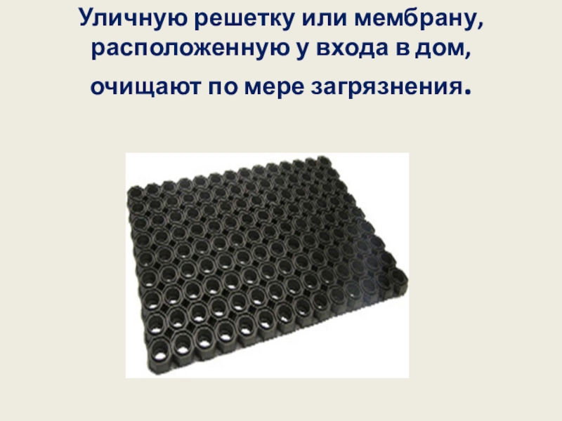 Слайд 17Уличную решетку или мембрану, расположенную у входа в дом, очищают по
