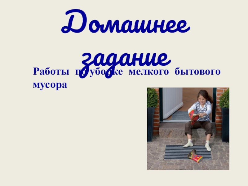 Домашнее заданиеРаботы по уборке мелкого бытового мусора