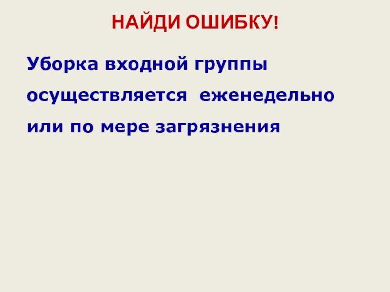 НАЙДИ ОШИБКУ!  Уборка входной группы осуществляется еженедельно или по мере загрязнения