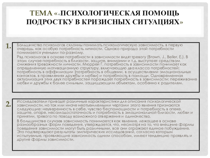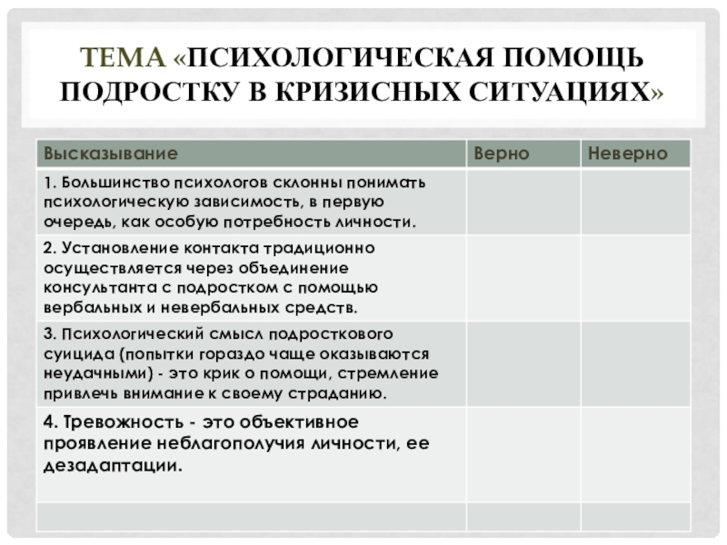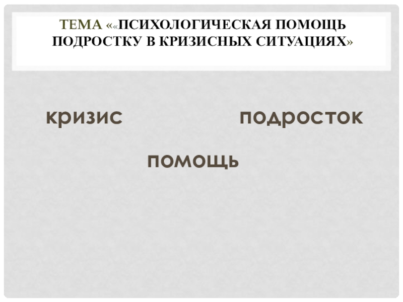 Тема «Психологическая помощь подростку в кризисных ситуациях»