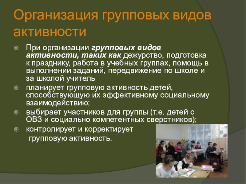 планирует групповую активность детей, способствующую их эффективному социальному взаимодействию;