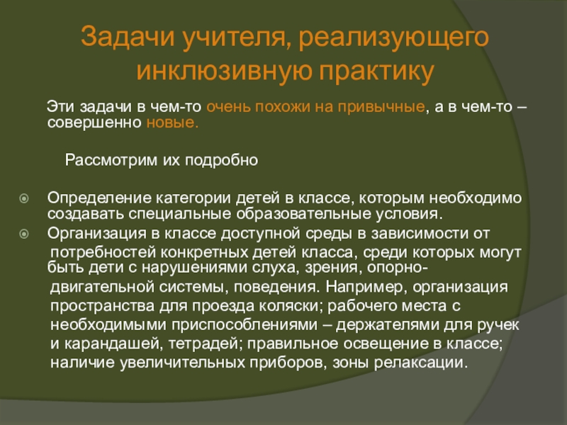 Слайд 5Задачи учителя, реализующего инклюзивную практику