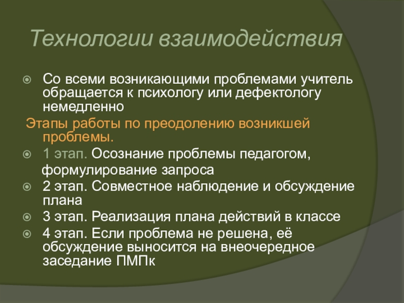 Слайд 21Технология взаимодействия учителя и специалистов психолого-педагогического