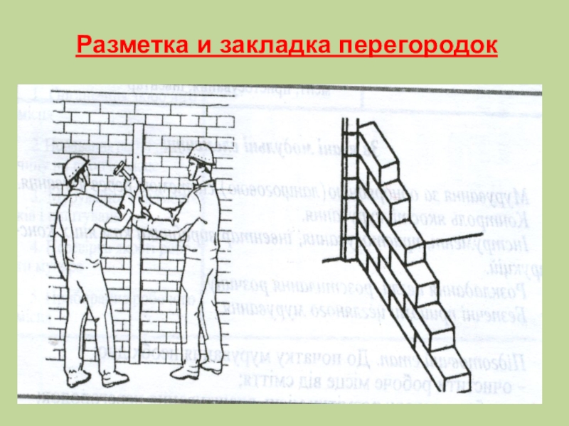 Слайд 1Кладка перегородок из кирпича