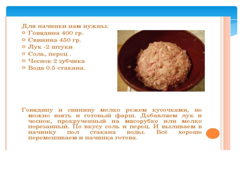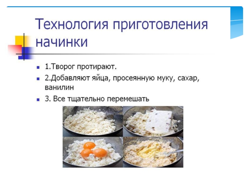 названия тех, которые применяются при приготовлении начинок и фаршей.