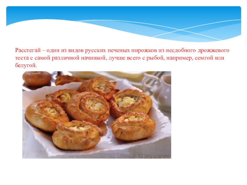 Расстегай – один из видов русских печеных пирожков из несдобного дрожжевого