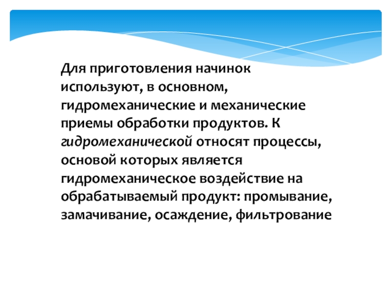 Для приготовления начинок используют, в основном, гидромеханические и механические приемы обработки