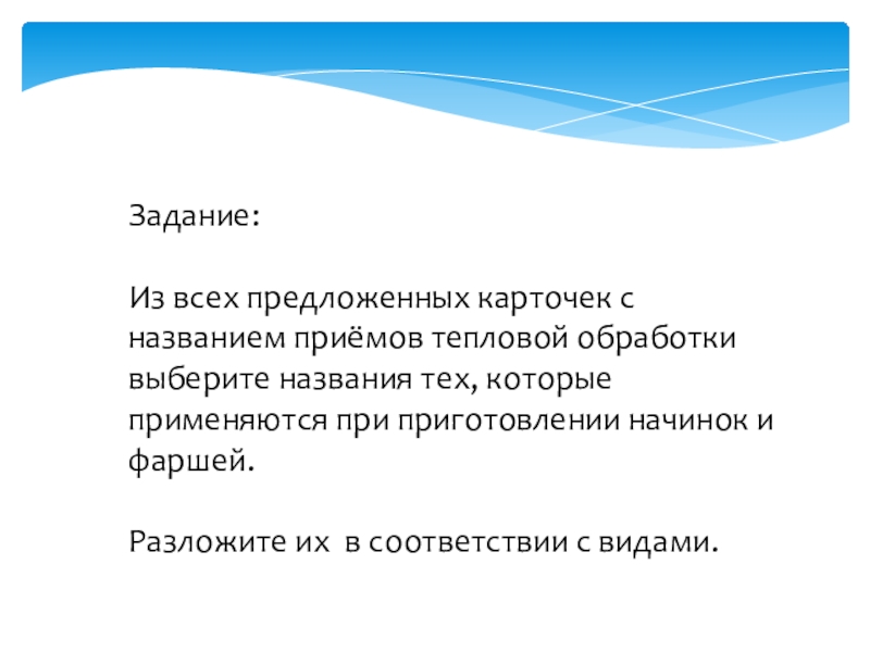 Из всех предложенных карточек с названием приёмов тепловой обработки выберите