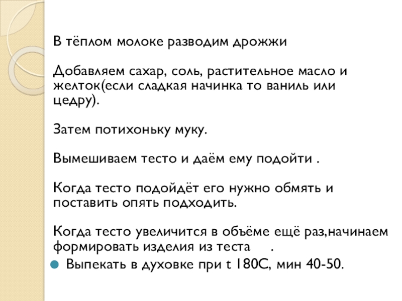 Слайд 4ТЕХНОЛОГИЯ ПРИГОТОВЛЕНИЯ ДРОЖЖЕВОГО БЕЗОПАРНОГО ТЕСТА