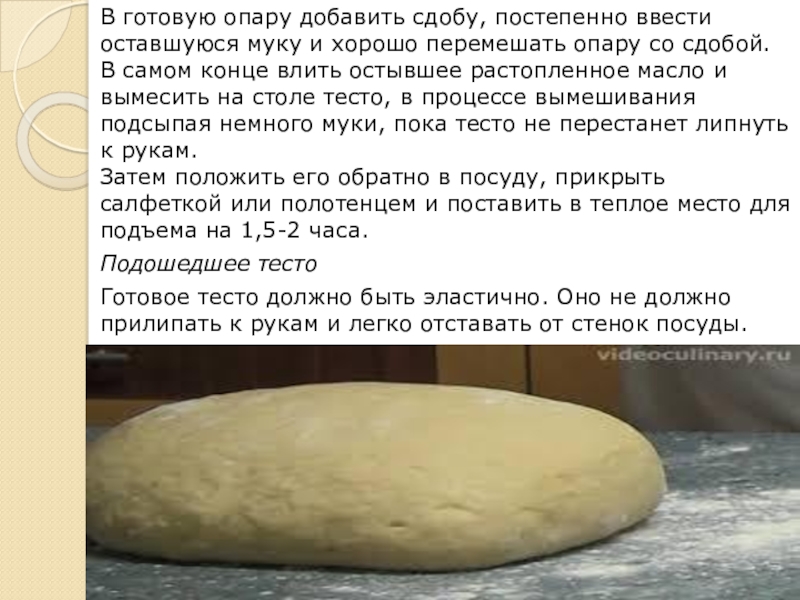Слайд 8В готовую опару добавить сдобу, постепенно ввести оставшуюся муку и хорошо
