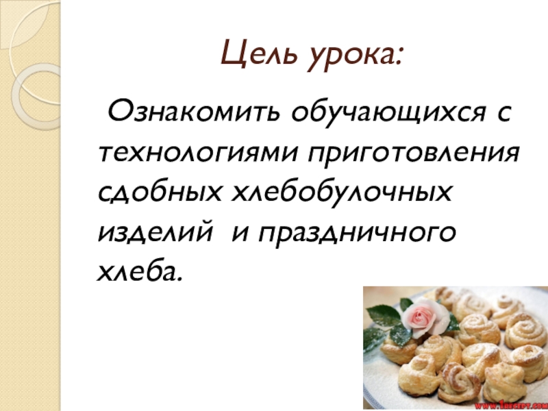 Ознакомить обучающихся с технологиями приготовления сдобных хлебобулочных изделий и праздничного