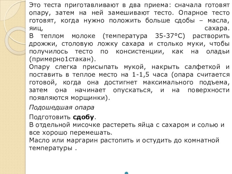 Слайд 7Это теста приготавливают в два приема: сначала готовят опару, затем на