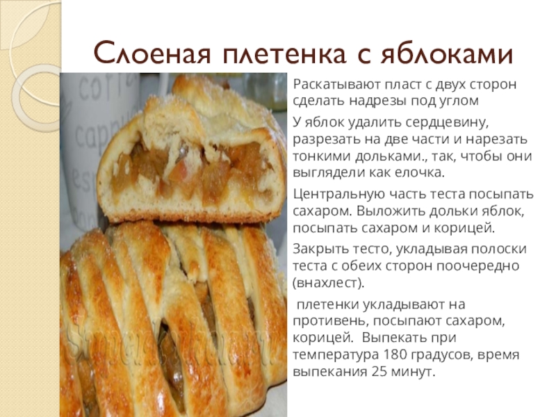 плетенки укладывают на противень, посыпают сахаром, корицей. Выпекать при температура 180 градусов, время выпекания 25 минут.